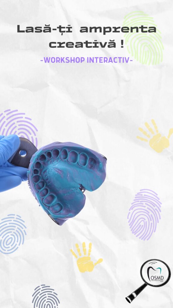 Vino să descoperi cum se realizează o amprentă dentară, exact ca într-un cabinet stomatologic! În acest atelier interactiv, vei afla ce materiale și instrumente se folosesc, de ce este importantă o amprentă precisă și vei putea încerca chiar tu să realizezi un mulaj dentar. O experiență practică, distractivă și educativă, perfectă pentru cei curioși să învețe mai multe despre lumea stomatologiei!